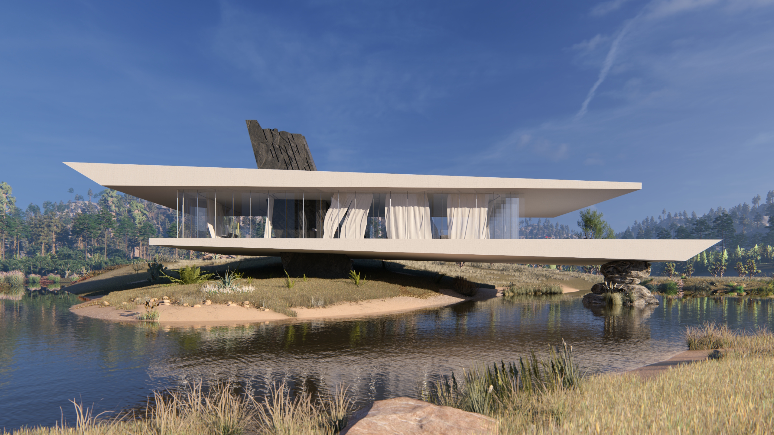 modern house architecture by HURO, with a pool, architectural visualization, თბილისი გოლფ რეზიდენსი