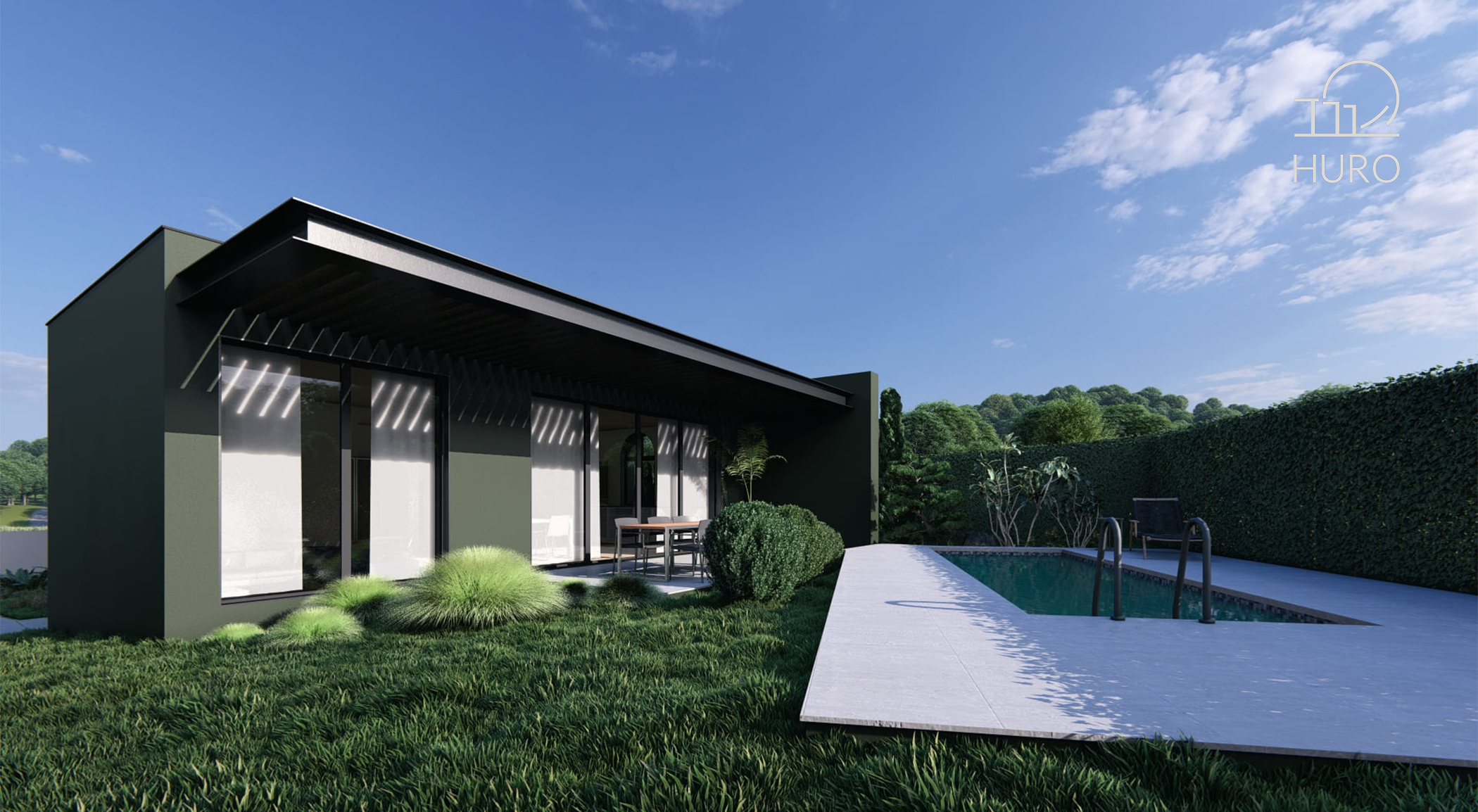 modern house architecture by HURO, with pool