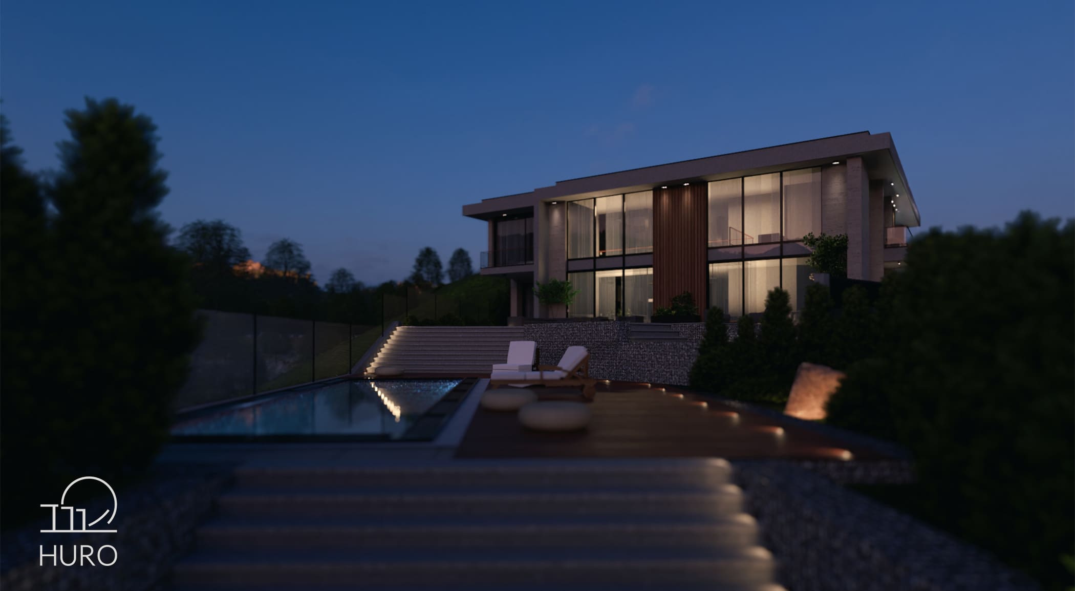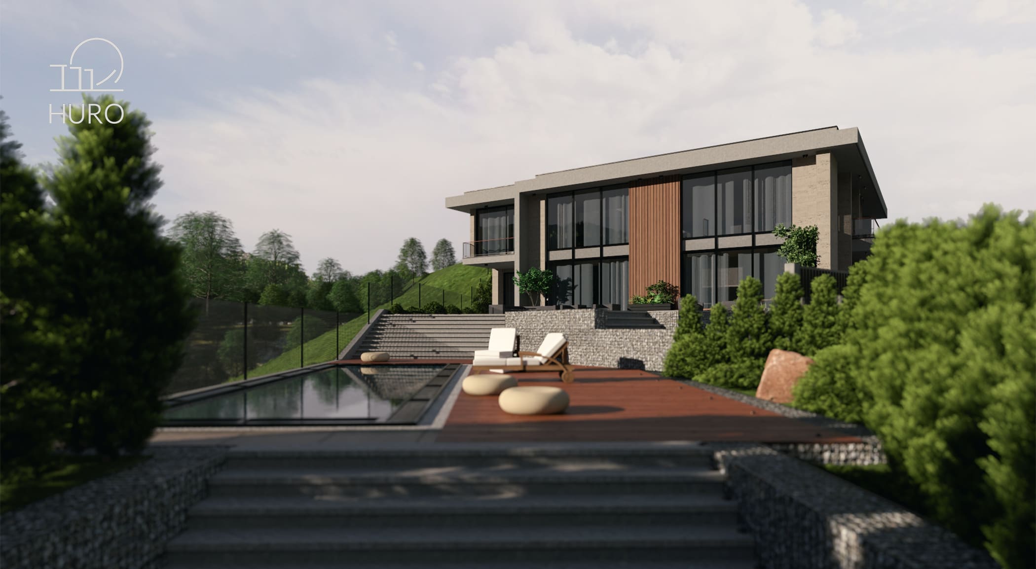 modern house architecture by HURO, architectural visualization, ჰურო, საპროექტო კომპანია