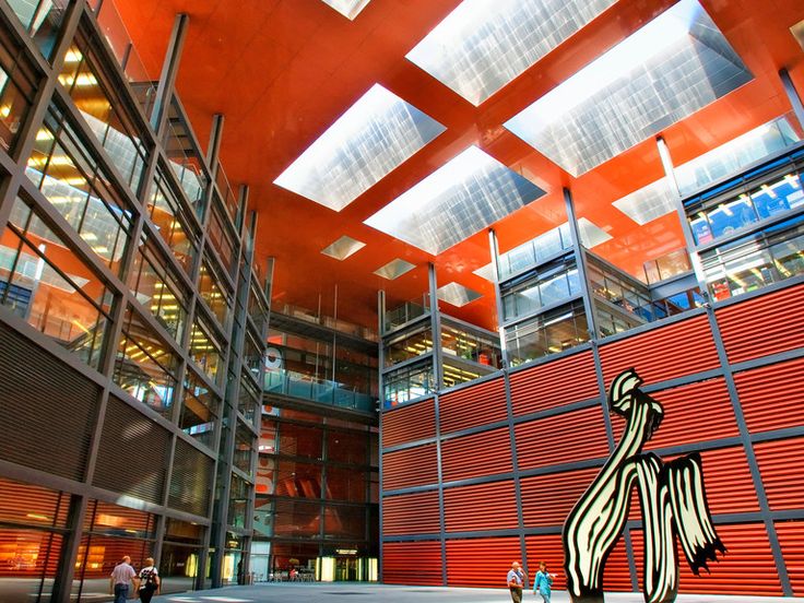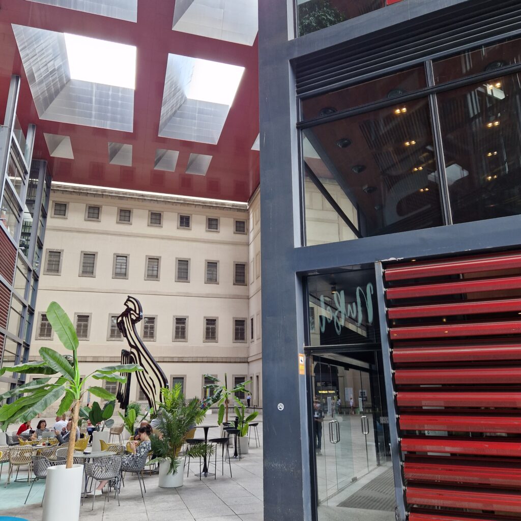 რეინა სოფიას მუზეუმში ჟან ნუველის (Jean Nouvel) ხელწერას მაშინვე იგრძნობთ: ფოლადი, მინა და დიდი წითელი სახურავი, რომელიც თითქოს მფარველივითაა გადაფარებული მოედანს. მისი კონსტრუქციული სისტემა დაფუძნებულია ფოლადის ჩარჩოზე, მინის ფასადებზე და მსუბუქ ალუმინის ელემენტებზე, რაც ქმნის მკვეთრ კონტრასტს XVIII საუკუნის ქვის მასალასთან. ამავე არქიტექტორის შესრულებულია აბუ-დაბის ლუვრიც (იხ.ბლოგი)